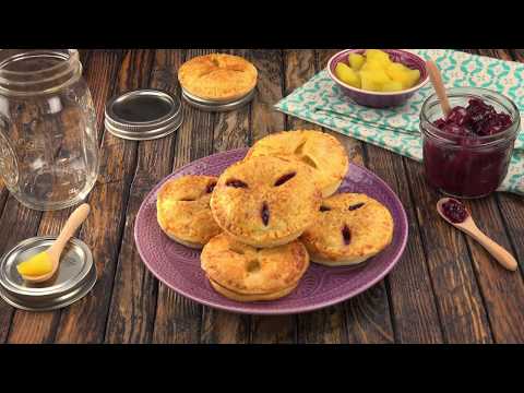 Dafür brauchst du (für 6 Stück):<br />2 Rollen Quiche-Teig<br />ein verquirltes Ei<br />80 g braunen Zucker<br />7 Einmachglasdeckel<br />Für die Apfelfarce:<br />2 Äpfel<br />100 ml Wasser<br />50 g Zucker<br />1 TL Vanillearoma<br /><br />Für die Kirschfarce:<br />200 g Schattenmorellen (inkl. Kirschsaft)<br />50 g Zucker<br />1 EL Speisestärke<br /><br />So geht es:<br />Rolle den ersten Quiche-Teig aus und schneide mit Hilfe eines Messers und dem Schraubverschluss eines Einmachglases sechs Teigfladen aus. Kleide mit jedem Fladen einen solchen Deckel aus.<br />Bereite anschließend die erste Füllung zu, zunächst das Apfelkompott: Schäle hierfür die Äpfel, schneide sie klein und koche sie mit dem Wasser, dem Zucker und dem Vanillearoma, bis die Flüssigkeit verkocht ist. Lass das Apfelkompott auskühlen und befülle damit die ersten drei Pasteten.<br />Für das Kirschkompott gießt du zunächst die Schattenmorellen ab, kochst den Saft mit dem Zucker auf und bindest ihn mit der Speisestärke ab. Gib anschließend die Schattenmorellen hinzu. Lass sie nach dem Kochen ebenfalls auskühlen, bevor du sie in die anderen drei Pasteten füllst.<br />Rolle den zweiten Quiche-Teig aus und schneide mithilfe des siebten Schraubverschlusses nochmals sechs Fladen aus. Versehe diese mit jeweils drei Einschnitten, setze sie auf den zuvor befeuchteten Rand der Pasteten und drücke sie am Rand mit einer Gabel fest.<br />Pinsele die Pasteten mit dem verquirlten Ei ein, streue den braunen Zucker darüber und stelle sie bei 180 °C Umluft für 20 Minuten in den vorgeheizten Backofen.<br /><br />Hier kannst du den kompletten Artikel zum Rezept lesen: http://www.leckerschmecker.me/quiche/?&ref=yt