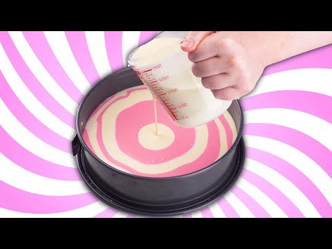 Auf Pinterest merken: http://bit.ly/2pgZ4uG<br /><br />Es wird bunt! Lass dir dieses unwiderstehliche Cheesecake-Rezept nicht entgehen. Das ist der perfekte Kuchen für den nächsten Geburtstag, nicht nur für Kinder!<br /><br />Hier gibt's das ganze Rezept zum Nachlesen: http://www.leckerschmecker.me/krachend-cremig/?&ref=yt<br /><br />Dafür brauchst du:<br /><br />Für die Käsecreme:<br /><br />850 g Frischkäse<br />150 g weiche Butter<br />100 g Zucker<br />3 EL Stärke<br />1 EL Vanillearoma<br />5 Eier<br /><br />Außerdem:<br /><br />etwas rosa Lebensmittelfarbe<br /><br />Für den Boden:<br /><br />400 g Mehl<br />200 g Butter<br />200 g Zucker<br /><br />Für die Dekoration:<br /><br />200 ml Sahne<br />400 g gehackte, weiße Kuvertüre<br />1 TL weiße Lebensmittelfarbe<br />bunte Zuckerstreusel<br />etwas steif geschlagene Sahne<br /><br />So geht es:<br /><br />Um die Käsecreme zuzubereiten, gib sämtliche Zutaten in eine große Schüssel und mische sie mit einem Handrührgerät zu einer einheitlichen Masse.<br />Teile die Creme in zwei Hälften und mische unter eine der beiden etwas rosa Lebensmittelfarbe. Vorerst stellst du die beiden Cremeportionen beiseite.<br />Für den Kuchenboden mische Mehl, Butter, Zucker und wieder etwas rosa Lebensmittelfarbe. Der Teig wird sehr krümelig und trocken. Streue ihn auf den Boden einer mit Backpapier ausgelegten Springform (Durchmesser: 26 cm) und presse ihn mit einem Teigschaber oder der Rückseite eines Esslöffels fest. Dann wird die Springform zwei Stunden kalt gestellt.<br />Nun fülle folgendermaßen die Creme in die Springform: Im Wechsel lässt du immer wieder kleine Portionen genau in die Mitte der Form laufen. Durch vielfaches Wiederholen entsteht so das schöne Kuchenmuster.<br />Anschließend wird der Kuchen schonend bei 150 °C Umluft für 1 1/2 Stunden gebacken. Nach dem Auskühlen entferne die Springform und platziere den Kuchen auf einem Kuchengitter.<br />Erhitze die Sahne und füge die Kuvertüre zu. Rühre sie mit einem Schneebesen unter, bis sie sich vollständig gelöst hat. Dann wird es Zeit, weiße Lebensmittelfarbe unterzurühren. Die flüssige Glasur lässt du vollständig auf die Mitte des Kuchens laufen. Dabei läuft sie selbstständig auch am Rand hinunter und hüllt den Kuchen ohne Aufwand vollständig ein.<br />Für den „finalen Look“ bestreust du die gesamte Kuchenoberseite mit bunten Zuckerstreuseln und setzt schließlich kreisförmig Sahnetupfen mit einem Spritzbeutel auf.<br /><br />Guten Appetit!<br /><br />Hier fndest du das Rezept des zweiten Videos: http://www.leckerschmecker.me/magie-zum-essen/?&ref=yt