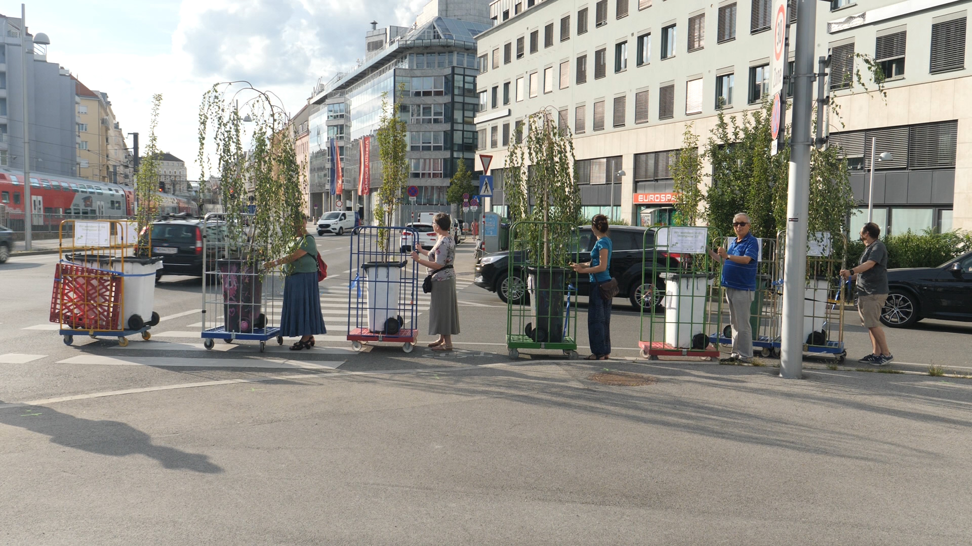 Seit Mitte Mai verwandeln insgesamt 15 sogenannte "Wanderbäume" Straßen im dritten Bezirk vorübergehenderweise in Alleen. So soll auf die Wichtigkeit von Begrünung insbesondere in den heißen Sommermonaten hingewiesen werden. Der Bericht zum Video auf https://www.derstandard.at/story/2000107335805/