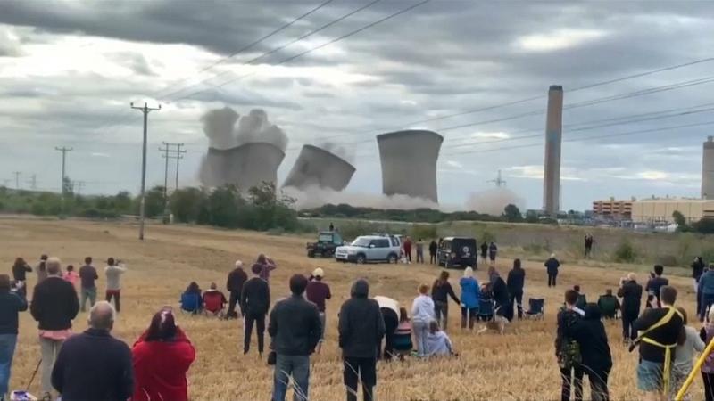 Die 114 Meter hohen Bauwerke in England wurden gesprengt. Danach gab es einen Stromausfall.