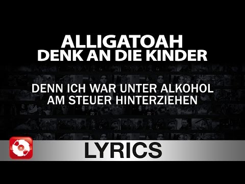 ALLIGATOAHS ALBUM "MUSIK IST KEINE LÖSUNG" JETZT BESTELLEN!<br />Amazon: http://amzn.to/1ljqBqF<br />iTunes:http://apple.co/1Pw8K9f<br />MediaMarkt: http://bit.ly/1NS3i1P<br />Saturn: http://bit.ly/1JwktCQ<br /><br />"Denk an die Kinder" Official Video: http://bit.ly/1Xl0mfr<br /><br />Alle Lyricvideos von Alligatoah: http://bit.ly/AlligatoahLyricvideos<br /><br />Alligatoahs YouTubechannel: http://www.youtube.com/kaliba69<br /><br />ALLIGATOAH:<br />http://www.facebook.com/alligatoah<br />http://www.alligatoah.de<br />http://www.twitter.com/kalligatoah<br /><br />JETZT AGGRO.TV ABONNIEREN: <br />http://www.youtube.com/aggrotv<br /><br />AGGRO.TV:<br />http://www.aggro.tv<br />http://www.facebook.com/aggrotv<br />http://www.tiny.cc/aggrotvgoogleplus<br />http://www.twitter.com/aggro_tv<br />https://instagram.com/aggro.tv/<br />http://www.myvideo.de/channel/AggroTV<br /><br />AGGRO SHOP: <br />http://www.downstairs.com/aggro<br /><br />EXKLUSIV AUF AGGRO.TV<br /><br />'Denk an die Kinder' Lyrics:<br />Schaut nicht weg, wenn das Elend plagt<br />Seit neustem mach ich wieder Urlaub in Dänemark<br />Den Tränen nah<br />Ich fahr wieder einen hässlichen Gebrauchtwagen<br />Ich dachte, man wächst mit seinen Ausgaben<br />Doch, wenn uns mal die Trends überholen<br />Ist Existenz bedroht bei uns prominenten Personen<br />Will mich ausnahmsweise wieder eine Sendung promoten<br />Muss ich Känguruhoden fressen, trotz schändlicher Quoten (Bah!)<br />Und so stopf ich meinen Riesenkamin mit unverkauften Exemplaren meiner Biographie<br />Dem letzten Paparazzi hab ich ins Gesicht gepuncht<br />Der knipst den Strand, wo ich lag, doch hat mich nicht erkannt<br />Zeit, dass ich wieder in die VIP-Logen darf<br />Außerdem muss ich die Raten für mein Speed-Boot bezahlen<br />Also muss ich möglichst viele Likes generieren<br />Ohne Zeit zu verlieren<br />Und ich weiß auch schon wie<br /><br />Denk an die Kin-dadada, dadada<br />Los denk an die Kin-dadada, dadada<br />Los denk an die Kinder<br />Denken tut nicht weh<br />Denk an die Kinder<br />Spende ein "Ohje!"<br />Denk an die Kinder<br />Endlich auf CD<br />Los denk an die Kin-dadada, dadada<br /><br />Wir Stars haben's schwer, denn alle warten<br />Dass wir etwas Falsches sagen - Hashtag Galgenraten<br />Ja okay, ich versteh, dass mich kein Fernsehmoderator mag<br />Seit meinem Selfie von der Nashornjagd<br />Doch warum ernte ich schärfste Kritik<br />Als Monsanto, Werbegesicht?<br />Vielleicht weil es nach jedem meiner Trinkgelage Imageschaden gab<br />Als würde man einen Pimmelkraken auf Da Vincis Abendmahl(en)<br />Ich bekam für meinen letzten Hit in der Hackfresse<br />Meiner Frau, kein' Applaus von der Klatschpresse<br />Klar, dass mich die Leute nicht mehr lieben<br />Denn ich war unter Alkohol am Steuer hinterziehen<br />Wurde inhaftiert wegen Ringelpietz mit einem Tinderteen<br />Aber ich grinse fies, denn ich gewinne wieder eure Sympathie<br />Mit einer Masche, die immer zieht<br /><br />Denk an die Kin-dadada, dadada<br />Los denk an die Kin-dadada, dadada<br />Los denk an die Kinder<br />Denken tut nicht weh<br />Denk an die Kinder<br />Spende ein "Ohje!"<br />Denk an die Kinder<br />Endlich auf CD<br />Los denk an die Kin-dadada, dadada<br /><br />Und sie denken auch an dich<br />Sie sind noch so klein<br />Denk an die Kin-dadada, und ich meine nicht die Schokolade<br />Wo denkst du hin?<br />Und du weißt, ich denk an die Kinder all night long<br />1, 2, 3, 4 kleine Kinder<br />Oh, Kinder sind so, verletzlich<br />Yeah! Yeah!<br />Kinder sind auf dieser Welt einfach unersetzlich<br />Nenn mich "Vater Theresa"<br />Und ich sing dir dein Gewissen rein<br />Sie brauchen unser'n Support<br />Wie soll ein Kind das ertragen?<br />Denk an die Kin-dadada, dadada<br />Wir waren auch mal jung, denk auch an uns<br />Sie können sich nicht wehren<br />Sogar ich denke manchmal daran, dadada<br />Es geht um Leben und Tod, um meine Platte