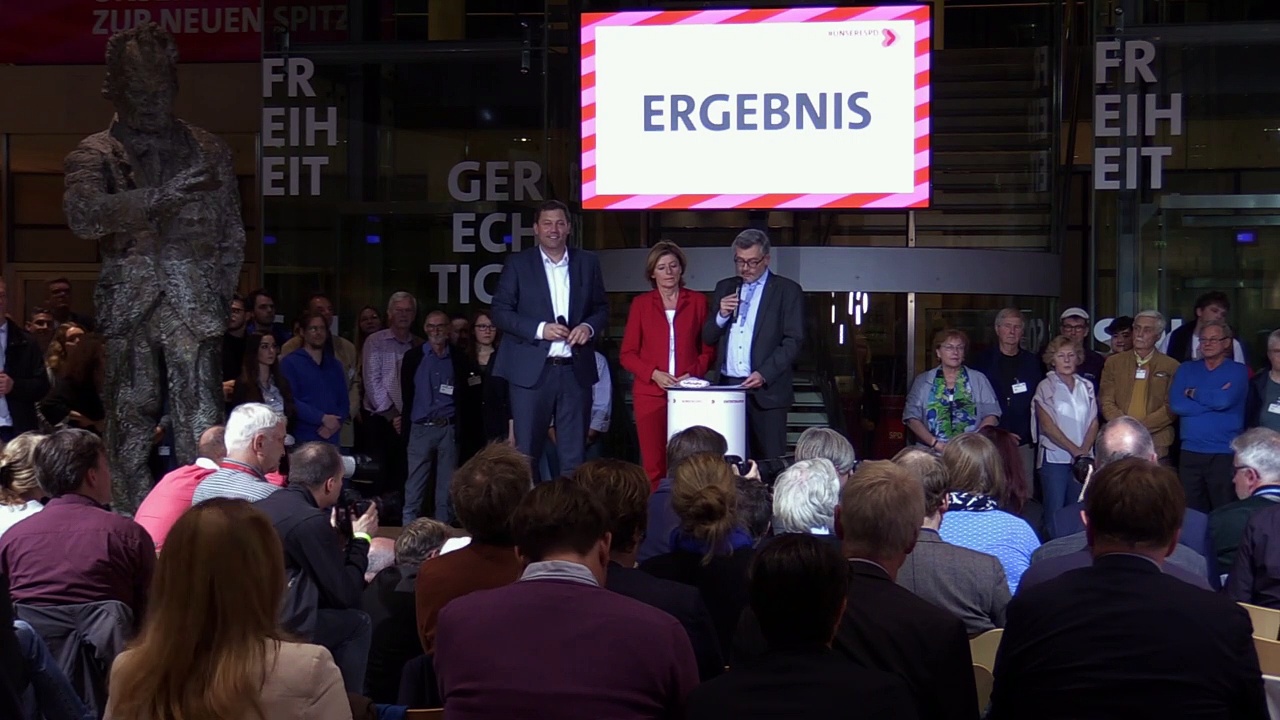 Die Entscheidung über die künftigen SPD-Vorsitzenden fällt in einer Stichwahl zwischen den beiden Kandidatenduos Geywitz/Scholz und Esken/Walter-Borjans. 53,3 Prozent der 425.630 wahlberechtigten SPD-Mitglieder nahmen Online oder per Brief an der Abstimmung teil.