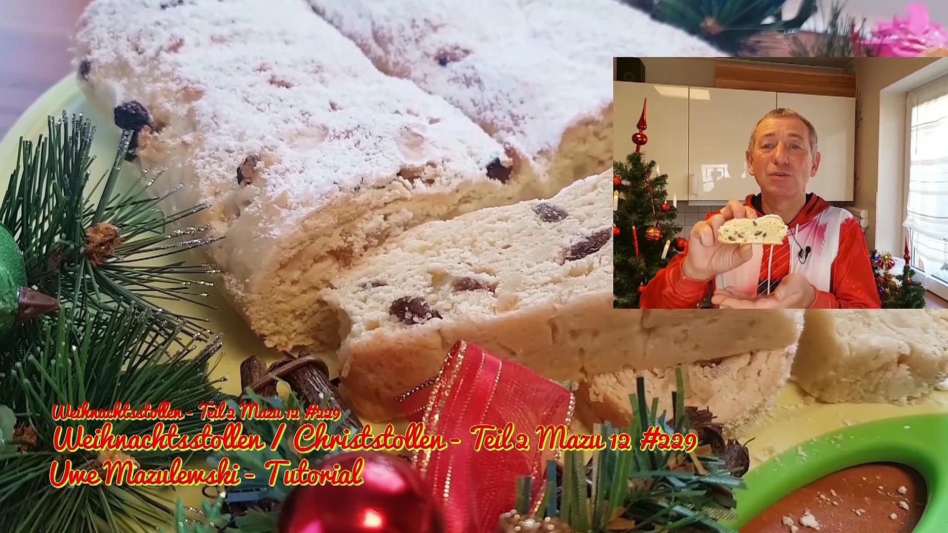 Zutaten für Weihnachtsstollen: <br />150 ml lauwarme Milch <br />500 g Mehl Type 405 <br />1 Würfel frische Hefe (42 Gramm) <br />70 g Zucker <br />1 Pck Vanillezucker <br />1 Pck Christstollen Würzmischung <br />100 g Rosinen <br />½ TL Salz <br />300 g weiche Butter (Zimmertemperatur) <br />1 ganzes Ei <br />50 g Orangeat <br />50 g Zitronat <br />100 g gesplitterte Mandeln <br />160 g Puderzucker <br />Zubereitung für Weihnachtsstollen: <br />Die Milch lauwarm erwärmen und 500 g Mehl in eine große Schüssel geben. <br />In die Mitte eine Mulde drücken und die und die Hefe hineinbröckeln. <br />Die warmer Milch und wenig Mehl mit einer Gabel verrühren. <br />Zugedeckt und an einem warmen Ort ca. 30 Minuten gehen lassen. <br />Zucker mit Salz, Butter und das Ei zugeben. <br />Alles mit den Knethaken zu ein glatten Teig verkneten. <br />Zugedeckt ca. 60 min gehen lassen. <br />Christstollen Würzmischung mit Zitronat, Orangeat, Mandeln und Rosinen mit den <br />Händen unter den Teig kneten. <br />Backofen vorheizen auf 175°C Umluft <br />Den Teig halbieren und zu einem Christstollen formen. <br />Nun 20 Minuten gehen lassen. <br />Bei 175°C Umluft für ca. 45-50min backen. <br />Christstollen mit zerlassener Butter bestreichen und mit Puderzucker bestäuben.