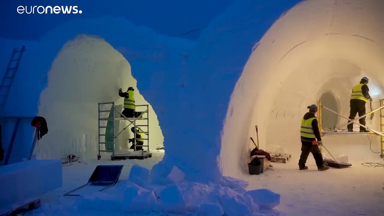 Das Kiruna Ice Hotel wird seit drei Jahrzehnten jeden Winter wieder aus Schnee und Eis in der nördlichsten Stadt Schwedens gebaut, in LapplandView on euronews</a>