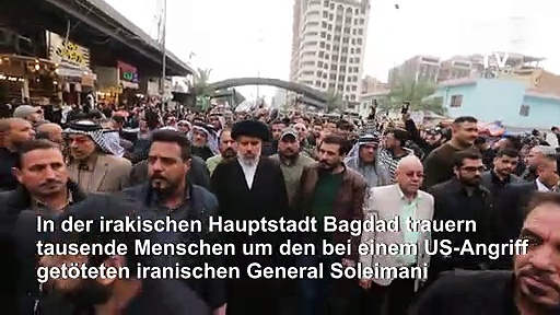 In der irakischen Hauptstadt trauern tausende Menschen um den bei einem US-Angriff in Bagdad getöteten iranischen General Soleimani. Bei der Attacke starb auch ein irakischer Milizenführer.