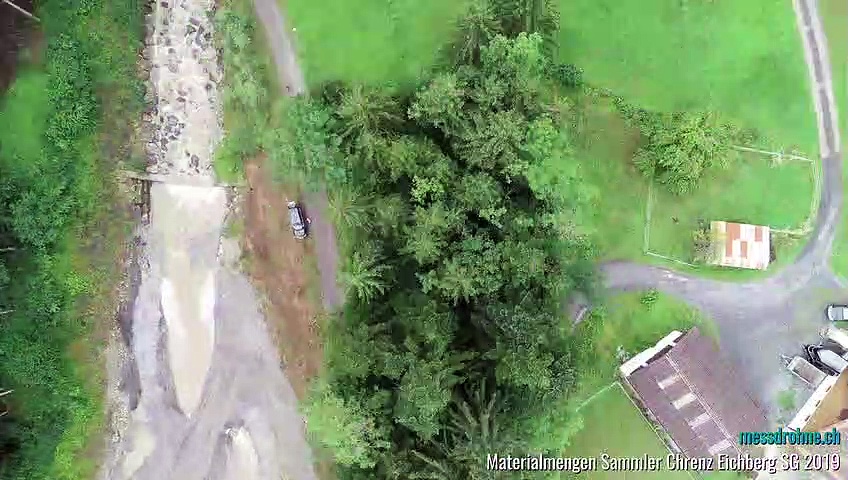 Materialmengen sind bei Bauaushüben oder Entleerungen von Geschiebesammlern eine wichtige Information, um Unternehmer korrekt nach abtransportiertem Material zu entschädigen. Auch bei diesem Beispiel der Entleerung des Geschiebesammlers Chrenz in Eichberg SG wurden die genauen Kubaturen der ausgebaggerten Mengen benötigt. Mittels Drohnenvermessung wurde der Sammler vor und nach der Entleerung beflogen. Aus den Luftbildern wurden mittels Photogrammetrie georeferenzierte 3D-Punktwolken und daraus wiederum digitale Geländemodelle (DGM) berechnet. Die zwei DGM konnten miteinander verglichen und die genaue abtransportierte Materialmenge berechnet werden. Eine effiziente und genaue Vermessung mit Hilfe von Drohnen. <br /> <br />Dieses und weitere Projekte sowie weitere Informationen sind auf folgenden Sites dokumentiert: <br />https://kreis-sargans.ch/referenz/drohnenvermessung-geschiebesammler-chrenz-in-eichberg-sg <br />https://kreis-sargans.ch/drohnenvermessung <br />https://messdrohne.ch/