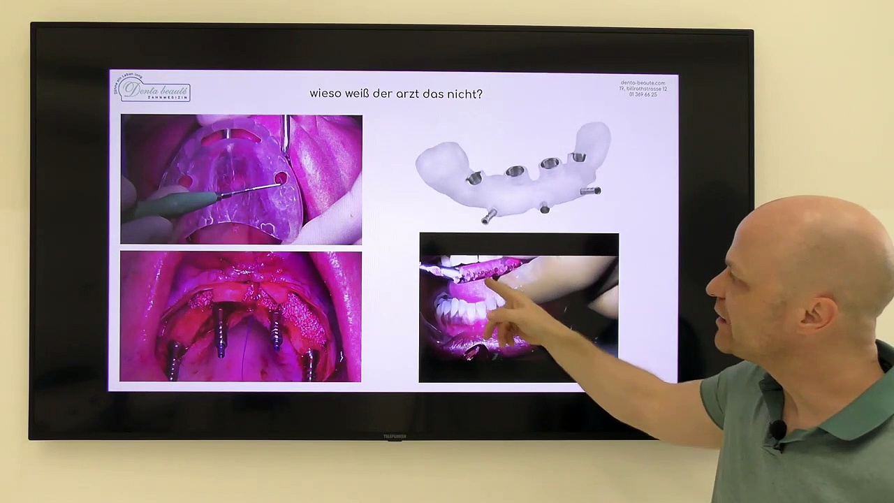 wieso das der arzt nicht weiß, kann ich euch nicht sagen, aber mehr zum thema navigation und implantation und generelle überlegungen zum thema wissen arzt ...<br /><br />ein video zum thema navigierte implantation https://www.youtube.com/watch?v=MCbZ3IQhpiM<br /><br />hier ein video zum thema implantat navigation allgemein https://www.youtube.com/watch?v=UKh4cTdtS7I<br /><br />hier ein vid zum thema stanzen https://dai.ly/x6y3ny9<br />-------<br />Leid hat eine Ursache.<br />Eine Ursache hat immer einen Anfang und somit ein Ende.<br />Nur Sie können Ihr Leid beenden, denn in einem System, wo wir Krankheit zum Geschäft gemacht haben, ist niemand an Ihrer Gesundheit interessiert!<br />Werden Sie selber aktiv, sonst verkommt das Internet zu dem heutigen Fernsehen https://dai.ly/x6xyyl5<br />------<br />Mehr Infos auch im Zahnforum: http://www.denta-beaute.at/zahnforum/ddr-belsky/<br />oder auf unserer neuen Homepage: http://www.denta-beaute.com/