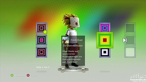Seht in diesem Video alle von uns in dem Spiel From Dust freigespielten Avatar Awards. Nach Abschluss aller Aufgaben können wir für unser digitales Abbild eine Maske aussuchen. <br /><br />Das Spiel From Dust wurde auf der Xbox 360 am 27.07.2011 veröffentlicht und ist ein Abenteuerspiel.<br /><br />In diesem Video seht ihr die Award Awards:<br /><br />- Die Stammesmaske<br /><br />Unter Avatar Awards versteht man eine besondere Belohnung innerhalb eines Spiels. Erstmalig gab es eine solche Belohnung in dem Spiel Splosion Man und als letztes Spiel kann Batman: Arkham Origins aufgeführt werden. Vereinzelt wurden Spiele in unterschiedlichen Regionen veröffentlicht, die Avatar Awards sind immer die selben.<br /><br />Lies interessante Beiträge auf unserer Homepage:<br /><br />►Zur Homepage: https://www.konsolenfan.de/<br /><br />►Unterstütze uns über unseren Amazon-Affiliate-Link: (*1)<br /><br />Der Dailymotion-Kanal von Konsolenfan.de <br />►Konsolenfan Kanal: https://www.dailymotion.com/konsolenfan<br /><br />Die Social-Media-Kanäle von Konsolenfan.de: <br />►Facebook: https://www.facebook.com/konsolenfan/<br />►Instagram: https://www.instagram.com/konsolenfande/<br /><br />Unsere Live-Gaming-Kanäle:<br />►Mixer: <br />►►https://www.mixer.com/konsolenfan/<br />►►https://www.mixer.com/quandoz/<br /><br />►Twitch: <br />►►https://www.twitch.tv/konsolenfan/<br />►►https://www.twitch.tv/quandoz/<br /><br />§§§:<br /><br />(*1) Bestellst du etwas auf Amazon.de und klickst vorher unseren Link, bekommen wir einen kleinen Beitrag durch Amazon, ohne das du einen Cent mehr bezahlst. Es entstehen die somit keine weiteren Kosten.
