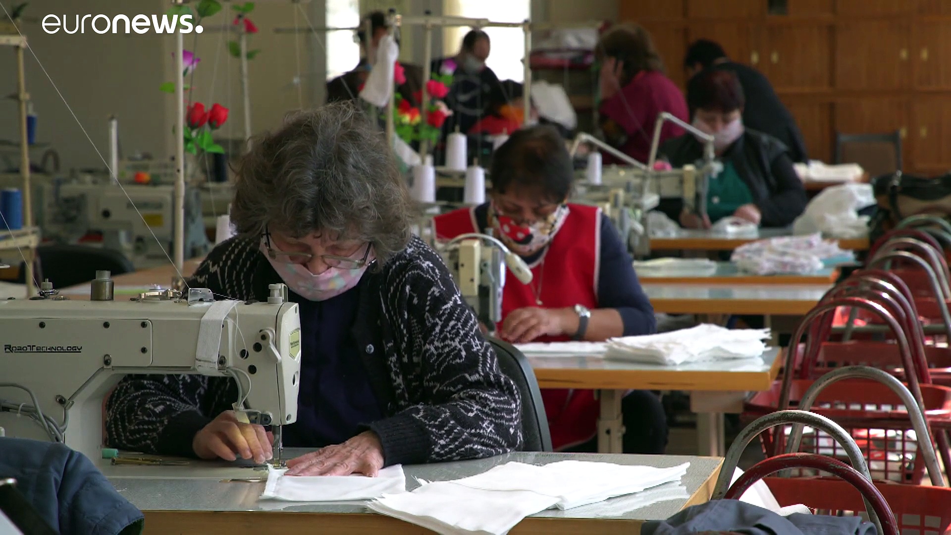 Die 25 Vollzeitnäherinnen produzieren bis zu 2000 Stück pro Tag. Aber auch das ist nicht genug in Zeiten der Covid-19-Krise, sagt die Leiterin der Fabrik.View on euronews</a>