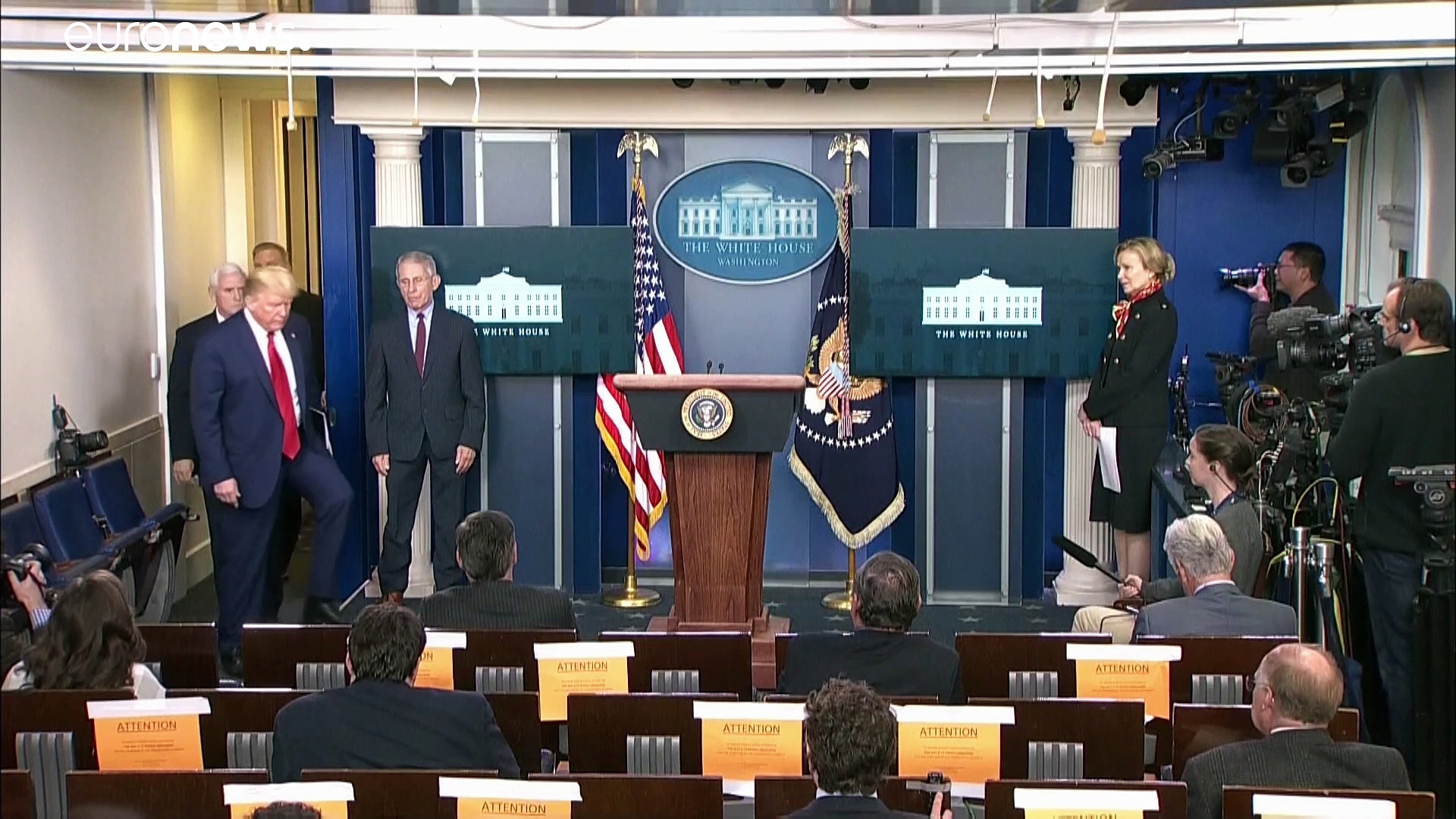 "Die nächsten zwei oder drei Wochen werden zu den schwierigsten gehören, die wir in diesem Land jemals hatten", sagte Trump am Dienstagabend im Weißen Haus. View on euronews</a>