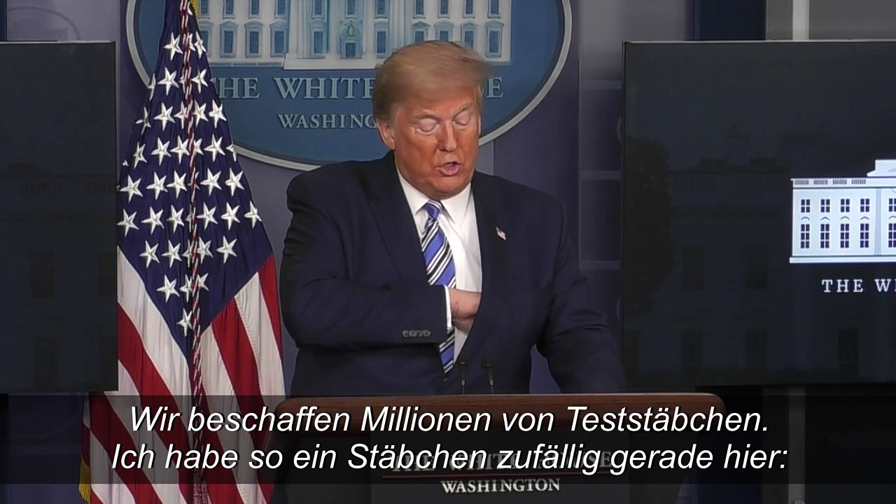 Im Kampf gegen das Coronavirus will Donald Trump eine US-Firma zur Massen-Herstellung von Teststäbchen zwingen. Bei der Vorstellung seiner Pläne verglich der US-Präsident die Stäbchen mit einem bekannten Wattestäbchen.