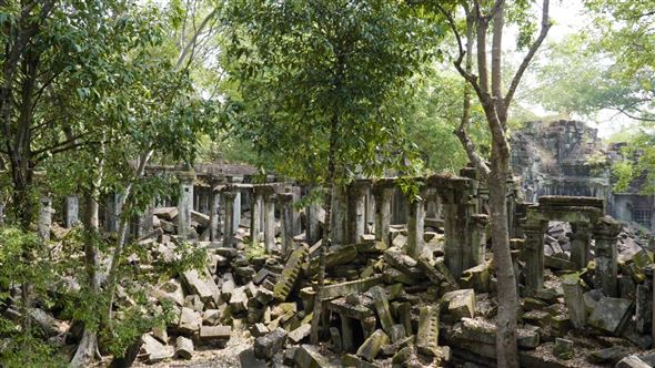 Beng Mealea ist eine von steinbrechenden Bäumen umschlungene Tempelruine in Kambodscha.