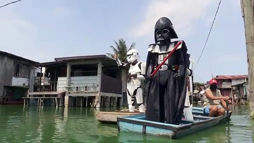 Nicht raus gehen, Abstand halten: In einem Armenviertel der philippinischen Hauptstadt Manila mahnt "Darth Vader" die Bewohner, sich an die Corona-Regeln zu halten.