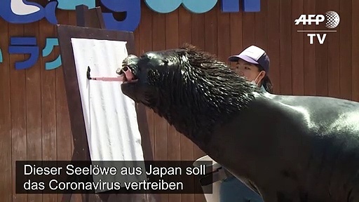 Ein Seelöwe aus dem Aquarium von Yokohama in Japan soll die Corona-Pandemie aufhalten. Der künstlerisch begabte Meeressäuger malt dafür ein Bild von "Amabie": Eine Meerjungfrau mit Schnabel, die im japanischen Volksglauben Seuchen vertreibt.