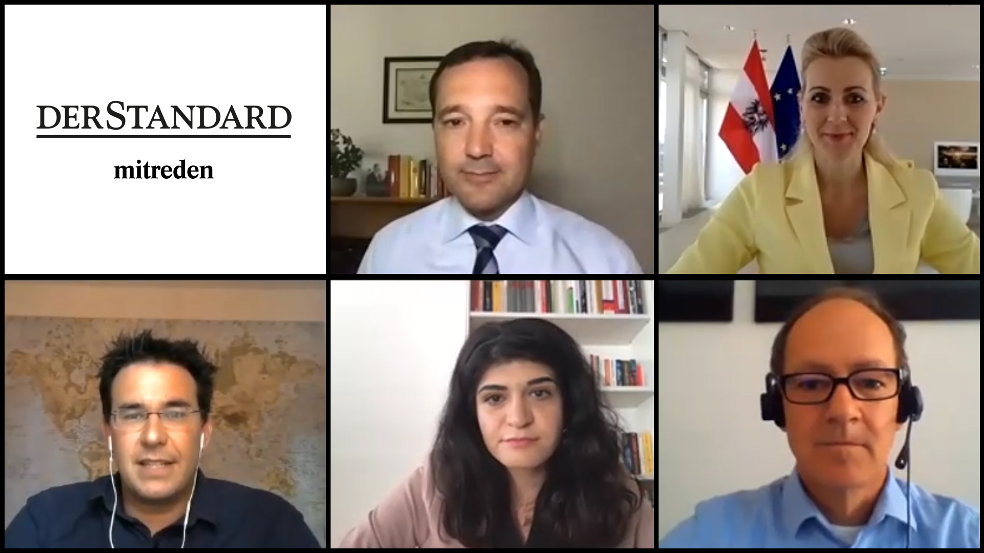 » der standard » mit reden » Christine Aschbacher ÖVP » Gerald Loacker Neos » Helmut Mahringer » Schifteh Hashemi