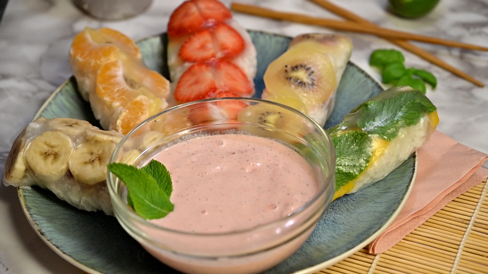 Dann probier doch mal unsere fruchtigen Frühlingsrollen!