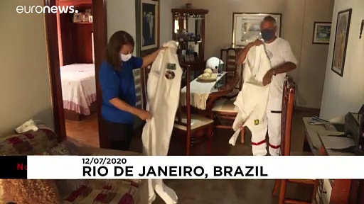 Ein brasilianisches Ehepaar schneiderte sich Anzüge, die jenen von Raumfahrern ähneln: Ein augenzwinkernder Schutz und eine Geschichtsstunde.View on euronews</a>