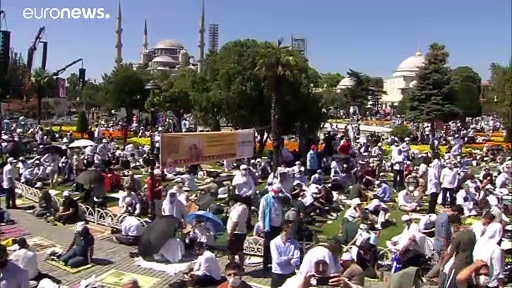 Das Bauwerk ist wieder ein muslimisches Gotteshaus: Auch der türkische Präsident Erdoğan wohnte dem ersten Gebet seit der Rückumwandlung in eine Moschee bei.View on euronews</a>