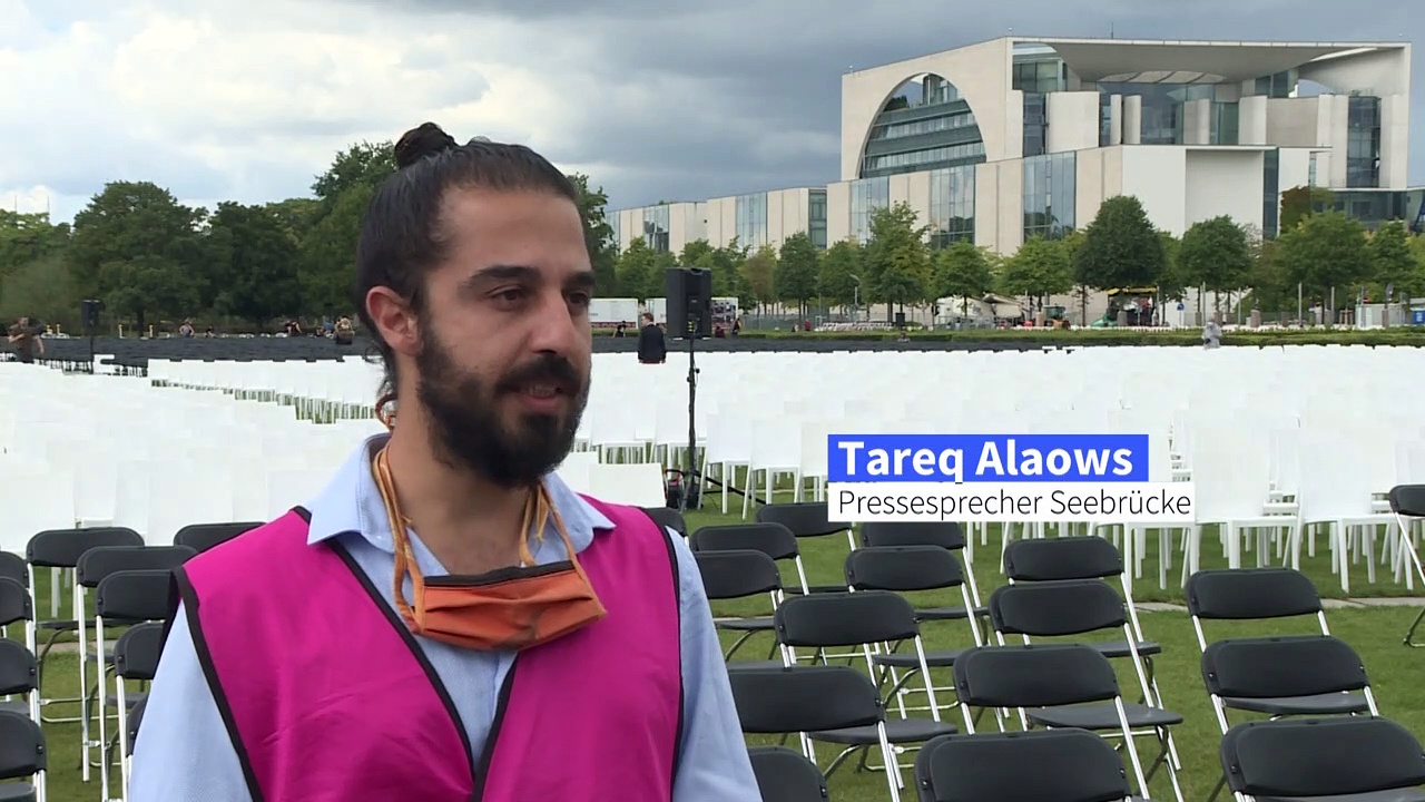 13.000 Stühle vor dem Bundestag in Berlin: Mit dieser Aktion machen sich Nichtregierungsorganisationen für eine engagiertere Flüchtlingspolitik stark. Die Stühle symbolisieren die 13.000 Menschen, die zurzeit im Flüchtlingslager von Moria auf der griechischen Insel Lesbos leben.
