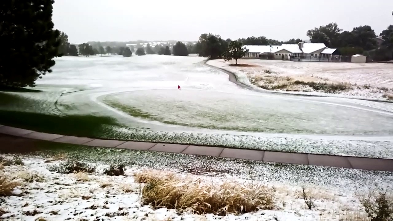 Verrücktes Wetter: Rund um Denver im US-Bundesstaat Colorado ist der erste Schnee gefallen. 24 Stunden zuvor ächzte die Stadt noch unter einer Hitzewelle mit Temperaturen um die 34 Grad Celsius.