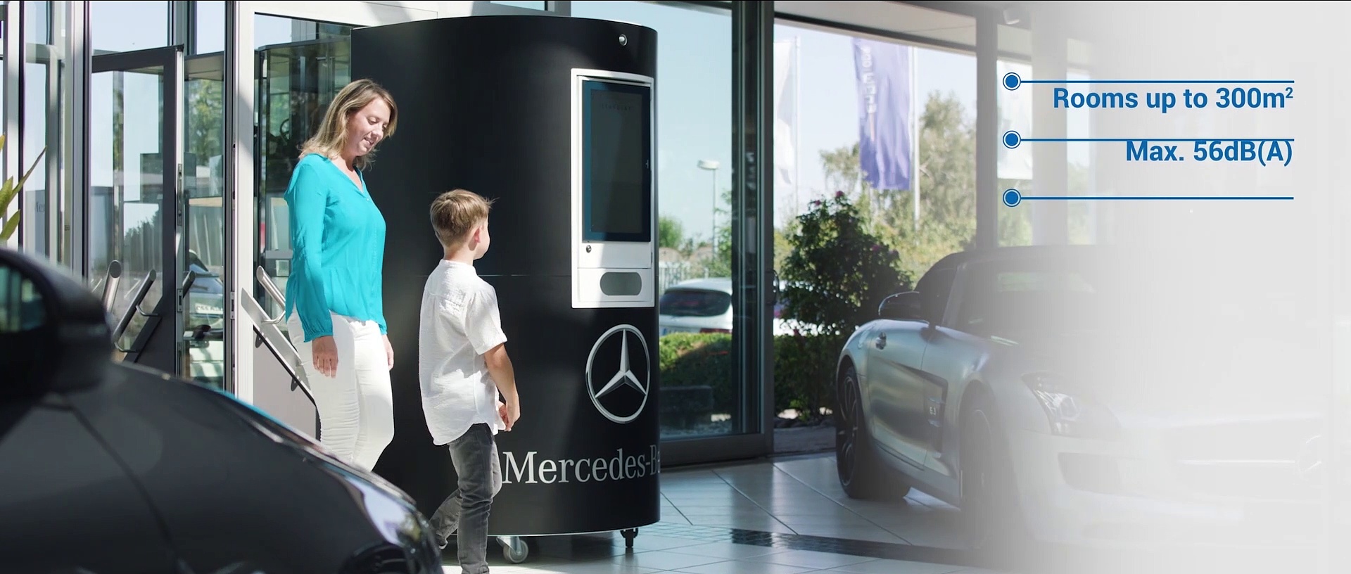 VITAPOINT® AIR CLEANER <br />filters viruses, aerosols, allergens and fine dust by 99.995%. <br />The VITAPOINT® effectively filters pollutants as small as 0.001 μm from the air we breathe and thus reduces the risk of infection by viruses to a minimum. With a capacity of 4,000 m³ / h, the air in rooms up to 300 m² can be completely filtered within a few minutes, making the VITAPOINT® the most efficient and therefore safest air purifier available on the market. <br /> <br />ADVANTAGES <br />• For rooms up to 300 m² <br />• 1,000 liters of air per second <br />• 24 inch touch display <br />• HEPA H-14 high performance filter <br />• Air quality monitoring <br />• Hand disinfectant dispenser <br />• Individual design <br /> <br />THE VITAPOINT SERIES® <br />• VITAPOINT 6000 pro <br />For rooms up to 300 m² <br />4,000 m³ / h performance <br />24 "display with automatic disinfectant dispenser <br />Sensor technology for monitoring air quality <br /> <br />• VITAPOINT 6000 <br />For rooms up to 300 m² <br />4,000 m³ / h performance <br />4.3 "display <br />Sensor technology for monitoring air quality <br /> <br />• VITAPOINT 5000 <br />For rooms up to 180 m² <br />2,500 m³ / h performance <br />4.3 "display <br />Sensor technology for monitoring air quality <br /> <br />www.XTRACTION-VITAPOINT.com