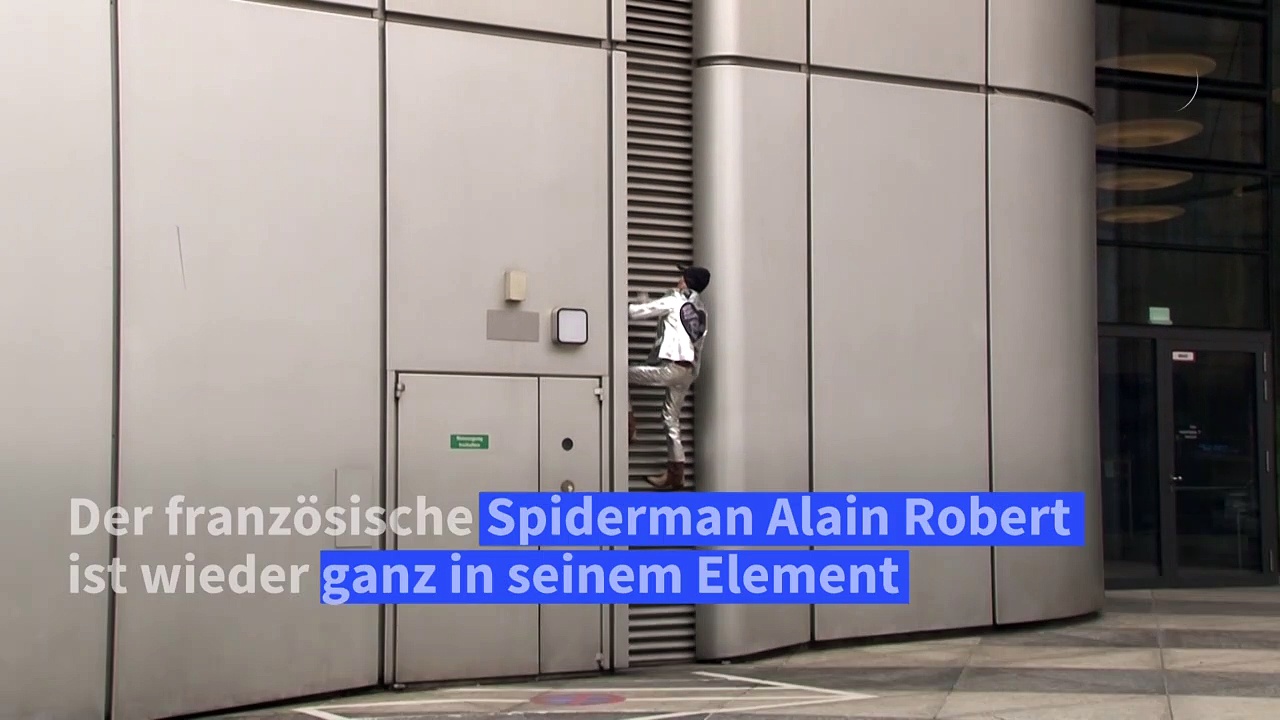 Der als "Spiderman" bekannte Franzose Alain Robert hat das 166 Meter hohe Hochhaus der Deutschen Bahn in Frankfurt am Main erklommen - in Cowboystiefeln. Der 58-Jährige ist als notorischer Fassadenkletterer bekannt.
