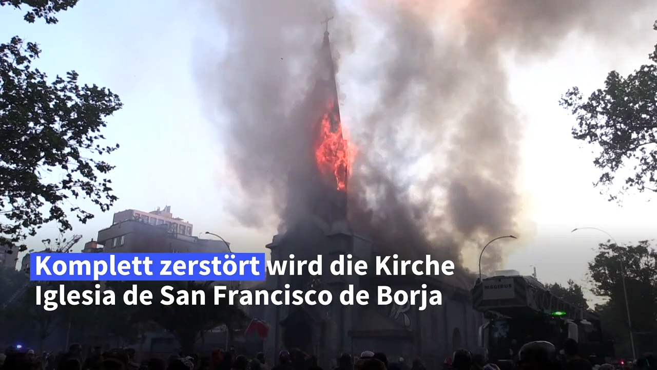 Am Rande der Proteste in Chile sind auch zwei Kirchen in der Hauptstadt Santiago in Flammen aufgegangen.