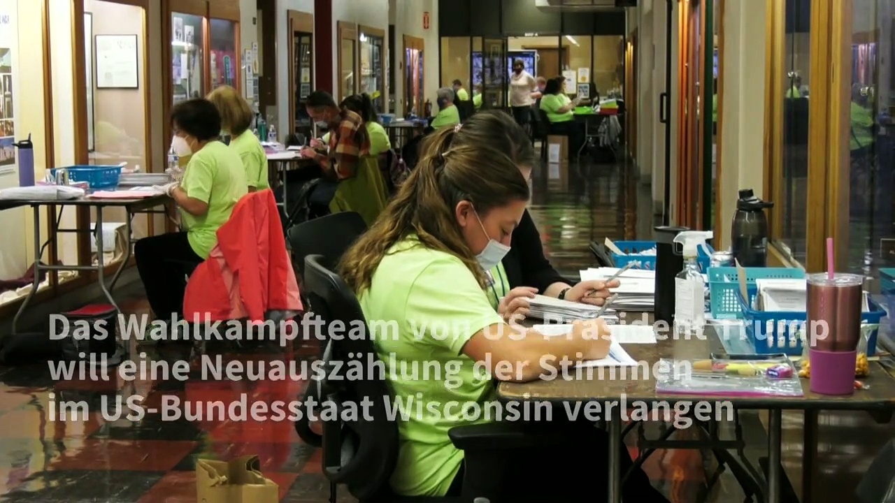 US-Präsident Donald Trump will das Wahlergebnis im Bundesstaat Wisconsin anfechten. Es habe Berichte über Unregelmäßigkeiten gegeben, erklärte sein Wahlkampf-Manager. Trump hatte in Wisconsin zunächst vorne gelegt, ist inzwischen aber hauchdünn hinter Joe Biden zurückgefallen.