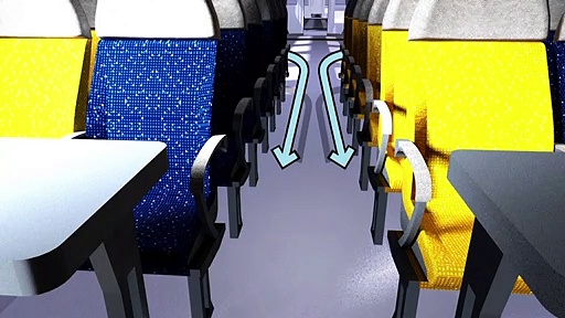 Die Gefahr einer Ansteckung mit dem Coronavirus betrifft auch öffentliche Verkehrsmittel. Eine Videografik erläutert, wie die Atemluft in modernen Passagierzügen konstant ausgetauscht wird.