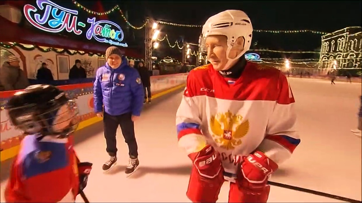Russlands Präsident Wladimir Putin hat sich auf dem Roten Platz in Moskau zum Eishockeyspielen verabredet – mit dem neunjährigen Dima aus dem Ural. Dabei bekommen die beiden prominente Unterstützung.