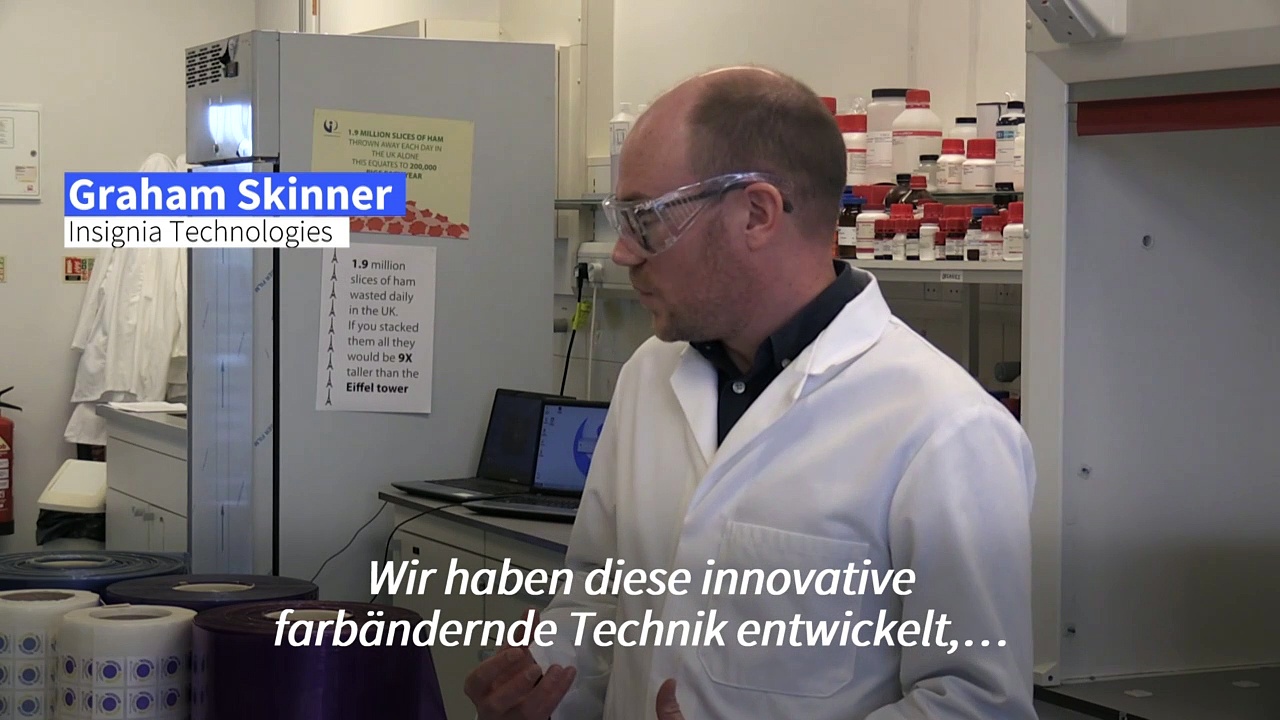 Ein schottisches Labor hat Aufkleber für Gesichtsmasken entwickelt, die mit der Tragezeit ihre Farbe verändern. Nutzer werden so darauf hingewiesen, wann sie ihre Masken wechseln sollten.