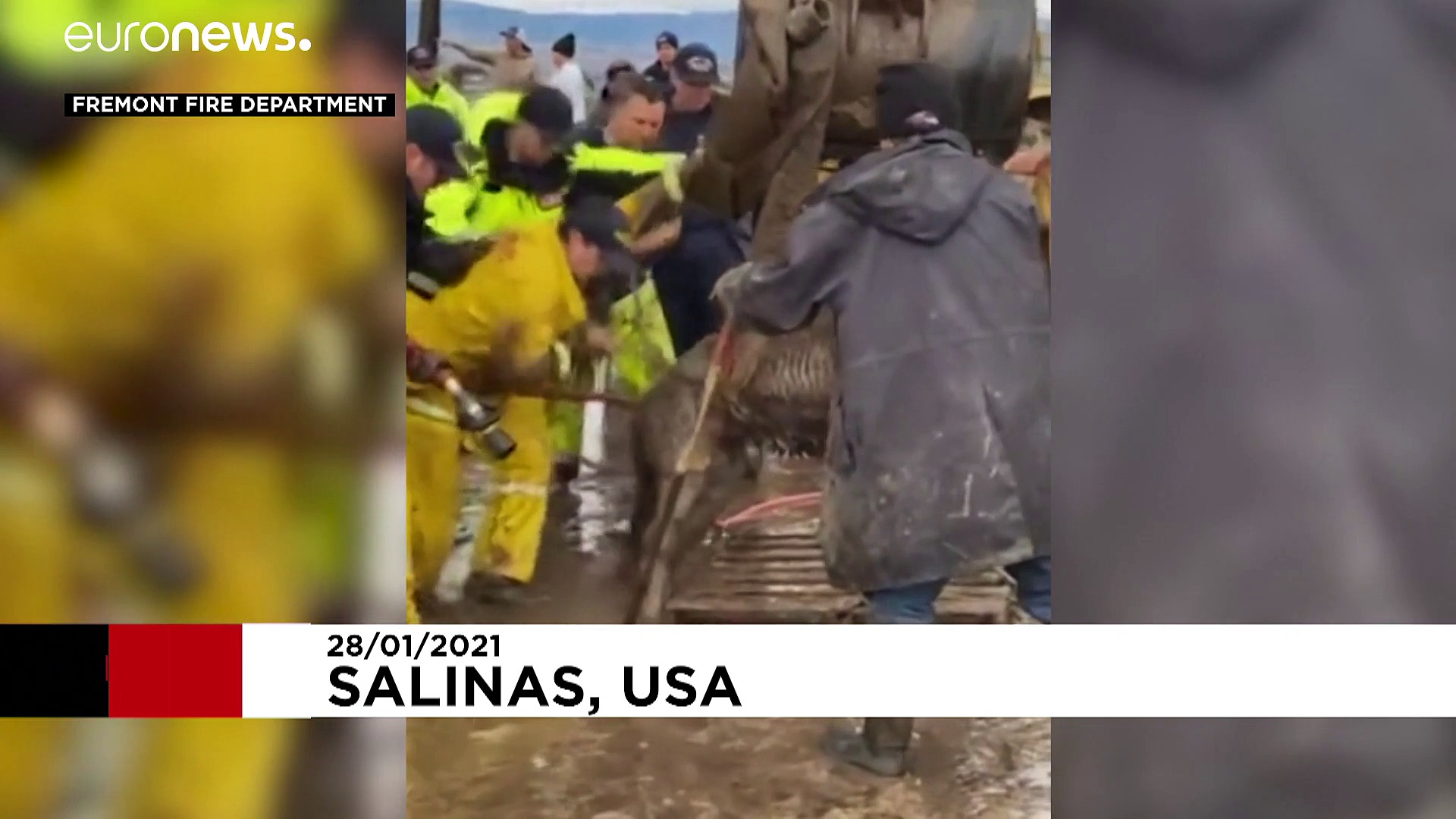 In Salinas (US-Bundesstaat Kalifornien) steckten die Tiere im tiefen Boden fest, die Feuerwehr rückte an.