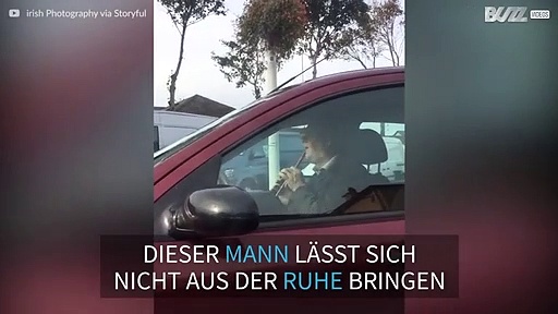 Dieser Autofahrer hat die Ruhe weg. Mitten im Berufsverkehr spielt er seine Blechflöte.