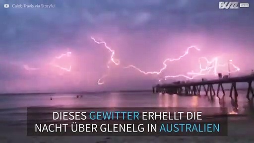 Ein heftiges Wetter-Spektakel erhellte den Himmel über Glenelg im Süden Australiens. Es waren so unglaublich viele Blitze, dass es aussah als sei der Himmel von einem elektrischen Spinnennetz überzogen.