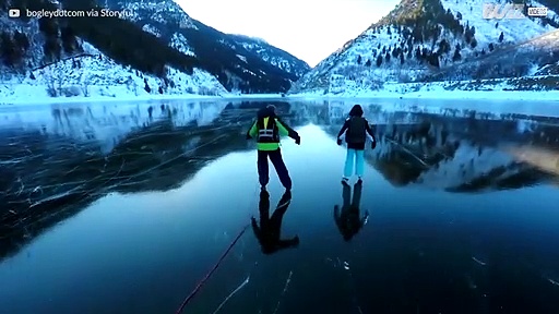 Justin McFarland filmte, wie seine Kinder im Pineview Reservoir in Utah Schlittschuh laufen. Dank der optimalen Wetterbedingungen, wurde die atemberaubenden Landschaft auf dem Eis reflektiert. Ein wundersch&ouml