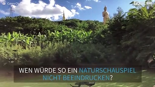 Pfaueninvasion vor chinesischem Tempel