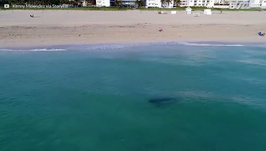 Die Aufnahmen dieser Drohne zeigen einen Tigerhai vor der Küste des Stadtteils South Beach in Miami. Das Tier wurde beobachtet, wie es sich an drei Badende annäherte, die sofort das Wasser verließen. Zum Glück gab es keine Verletzten.