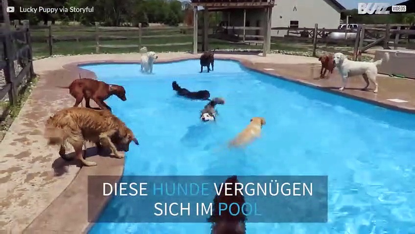 Duzende Hunde feiern Poolparty