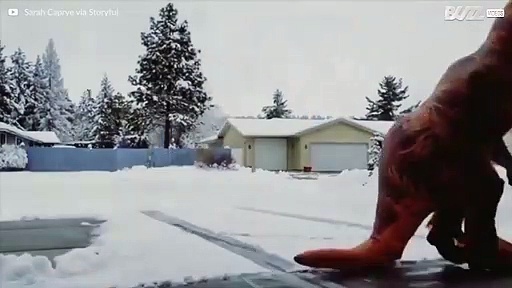 Ein heftiger Sturm traf die Stadt Spokane im Staate Washington. Der Schnee stand 20 cm hoch - da kann nur noch T-Rex Girl helfen.