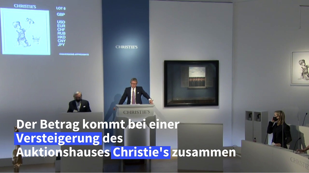 Beim Auktionshaus Christie's in London ist ein Gemälde von Street-Art-Künstler Banksy für umgerechnet fast 20 Millionen Euro versteigert worden. Die Erlöse kommen dem britischen Gesundheitssystem zugute.