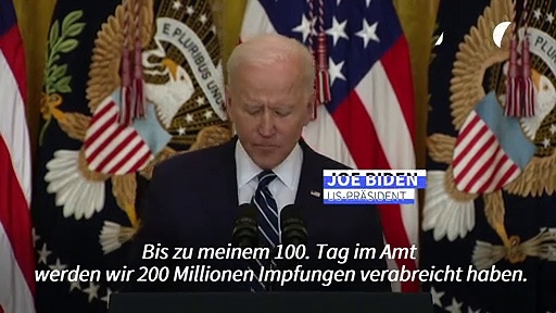 Bis zu seinem 100. Tag im Amt des US-Präsidenten sollen nach den Worten von Joe Biden 200 Millionen Corona-Impfungen in den Vereinigten Staaten verabreicht werden. Dieses Ziel nannte Biden bei einer Pressekonferenz in Washington.