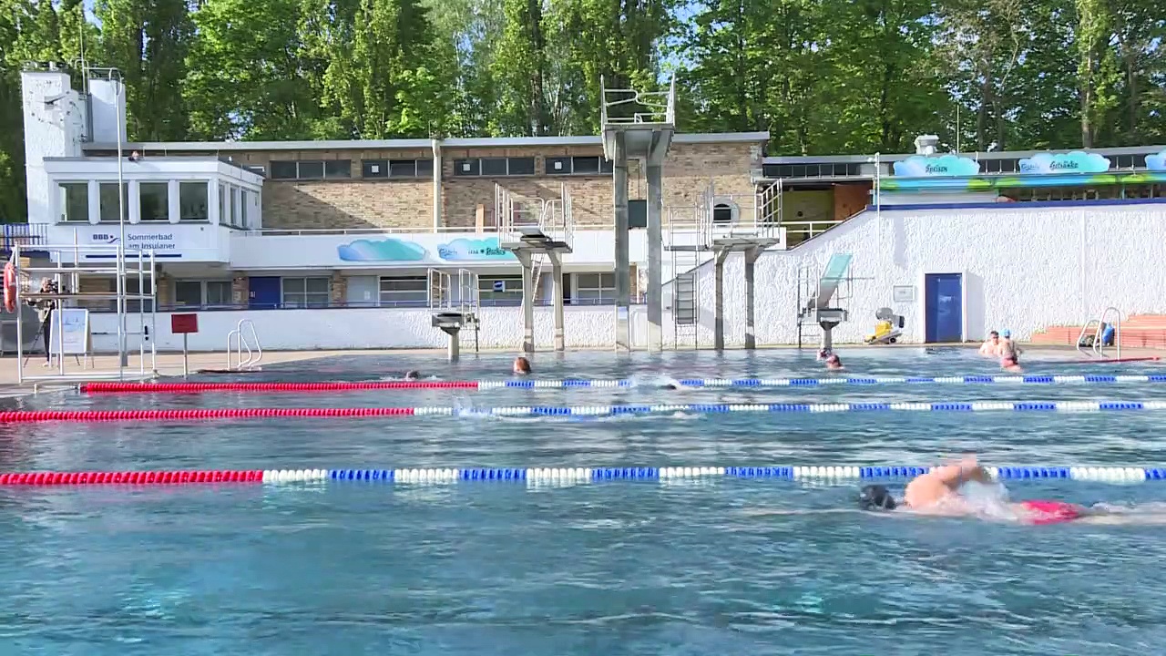 Weil die Sieben-Tage-Inzidenz in Berlin niedrig ist, dürfen die Freibäder in der Hauptstadt wieder öffnen. Trotz eher kühler Temperaturen waren zahlreiche Menschen im Schwimmbad am Insulaner.