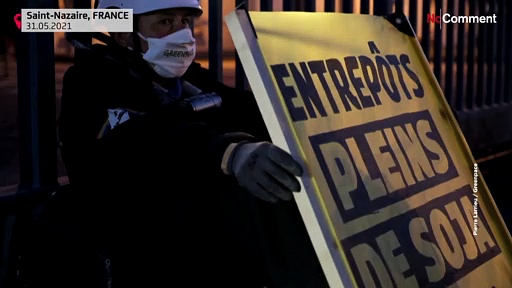 Sie erklommen eine Industrieanlage im französischen Saint Nazaire und befestigten Spruchbänder.