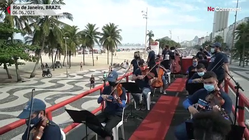 Da derzeit keine Konzerte stattfinden dürfen, haben sich Musiker in Rio de Janeiro etwas einfallen lassen. Sie spielten von der Ladefläche eines Lasters und ließen sich durch die Stadt fahren, zur Freude der PassantInnen.
