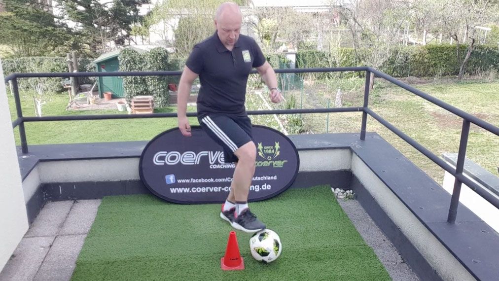 Rafael Wieczorek, als Coerver-Coaching-Director spezialisiert auf Techniktraining, zeigt, wie man nur mit einem Ball und etwas Platz seine Technik verbessert. In der 20. Folge geht es um eine weitere Übung zur Ballbeherrschung, diesmal mit Hindernis und drei Variationen. Weitere Übungen täglich bei kicker!