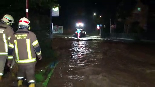 Einige Bäche im Tiroler Unterland traten über die Ufer. Kelchsau ist von der Außenwelt abgetrennt. In der Stadt Kufstein konnte der Zivilschutzalarm am Sonntagmorgen wieder aufgehoben werden, die Gefahr ist dennoch nicht gebannt.