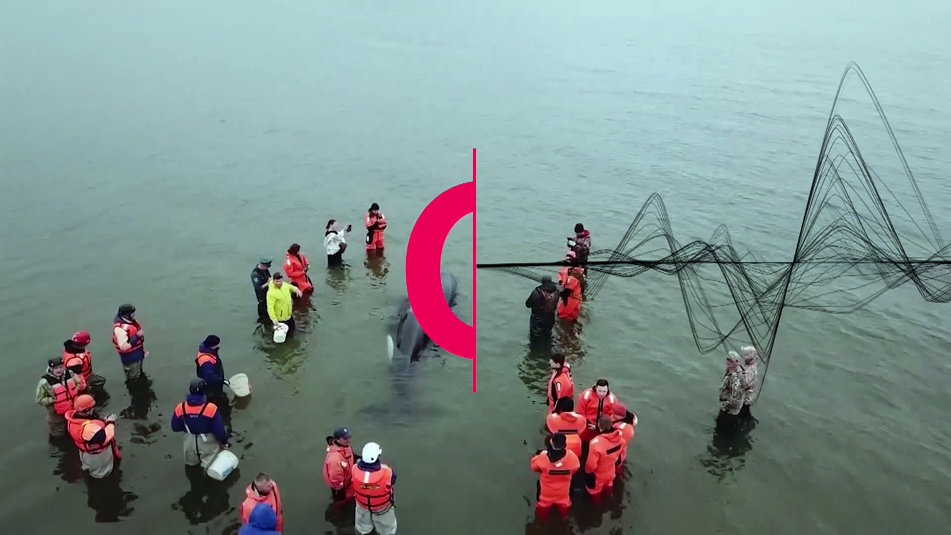 Von Helfern wurde er nass gehalten, bis der Orca wieder ins Meer schwimmen konnte.