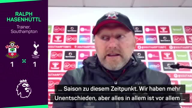 Southampton gelingt mit einem 1:1 gegen Tottenham ein versöhnlicher Abschluss der Hinrunde. Nach dem Spiel zeigt sich Trainer Ralph Hasenhüttl sehr zufrieden mit der ersten Saisonhälfte seines Teams.