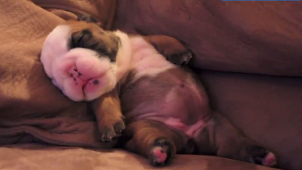 Diese Bulldogge tobt mit ihren Kleinen. Zum Dahinschmelzen.