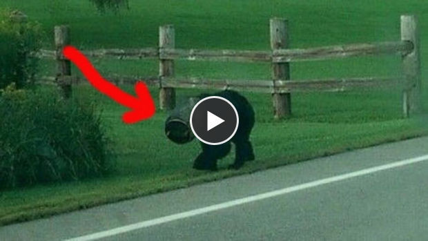 Ein Monat trug dieser Bär einen Airbag auf dem Kopf. Um ihn davon zu befreien, wurde das Unmögliche möglich gemacht.